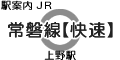 京急[エアポート快特]羽田空港国内線ターミナル駅・羽田空港国際線ターミナル駅 →京急[エアポート快特]品川駅 (JR線に乗り換え) →JR山手線品川駅 →JR山手線上野駅 |
