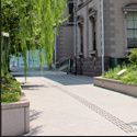 1872年に新橋〜横浜間で日本初の鉄道が開通した際に開業した新橋停車場の外観を、当時と同じ位置にできる限り忠実に再現。館内は鉄道歴史展示館となっており、開業当時の駅舎基礎石がのぞける見学窓やプラットホーム、0哩標識、鉄道や汐留の歴史に関する資料が展示されています。